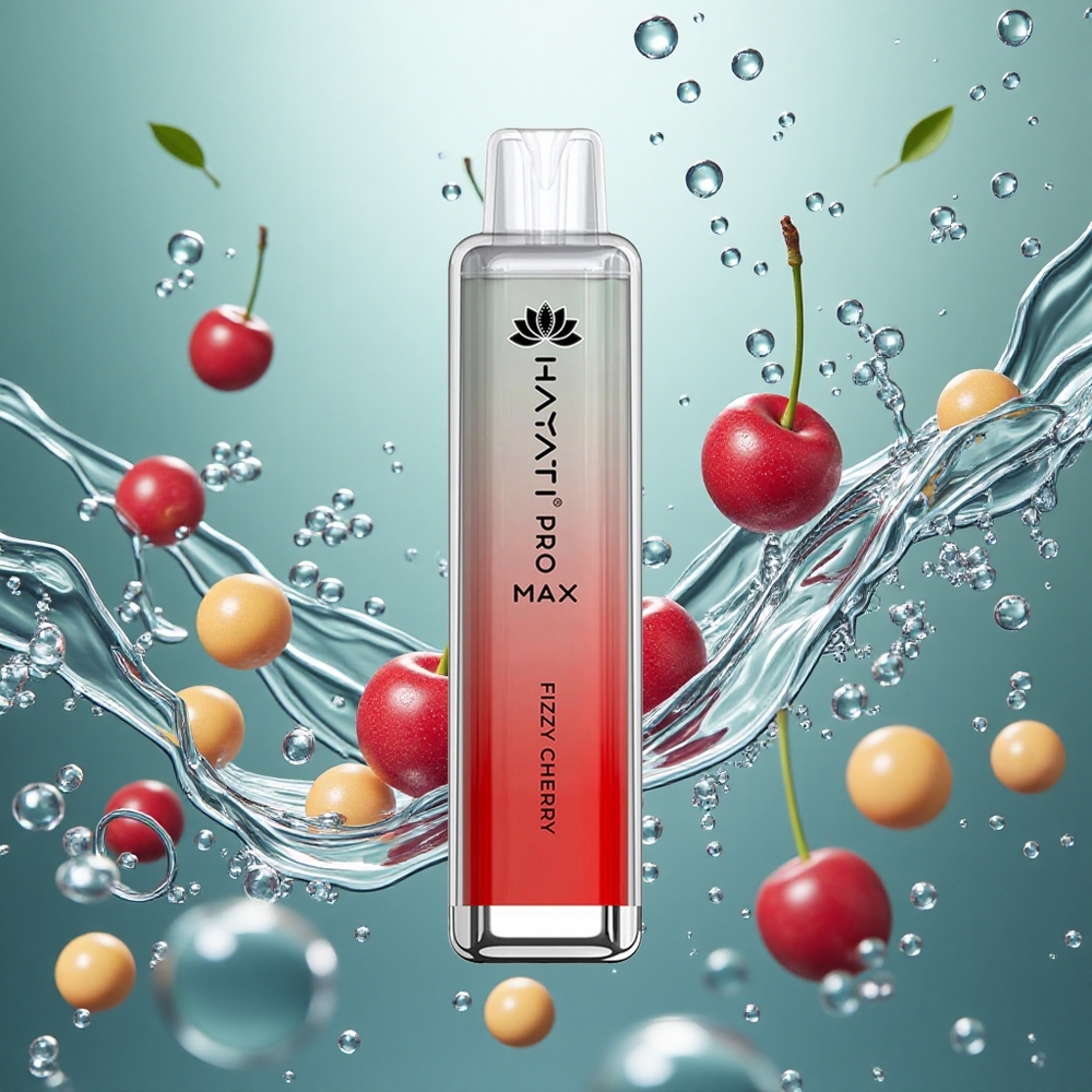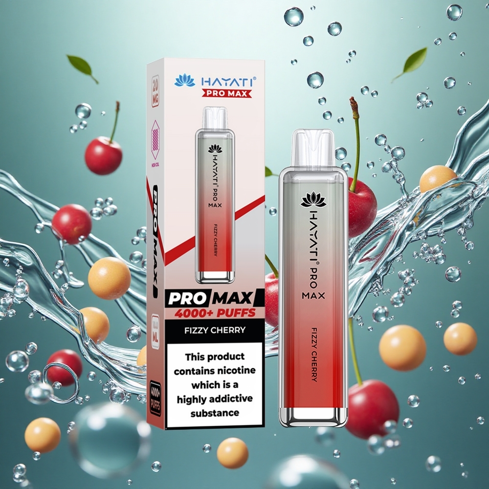 Hayati Pro Max 4000 Puffs Eldobható E-cigaretta Fizzy Cherry (Buborékos Cseresznye) – 1400mAh erős akkumulátorral, Kristály megjelenés, 2%, 5% Nikotin Erősség, TPD-kompatibilis