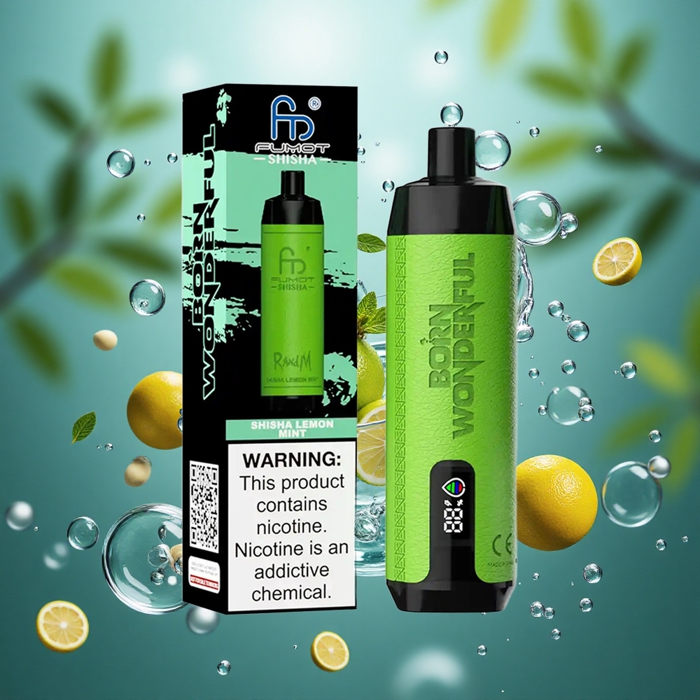 RandM Fumot Shisha 10000 Puffs Eldobható E-Cigit Citromfű mentes íz, 0,5% Nikotintartalmú, LED Kijelzővel