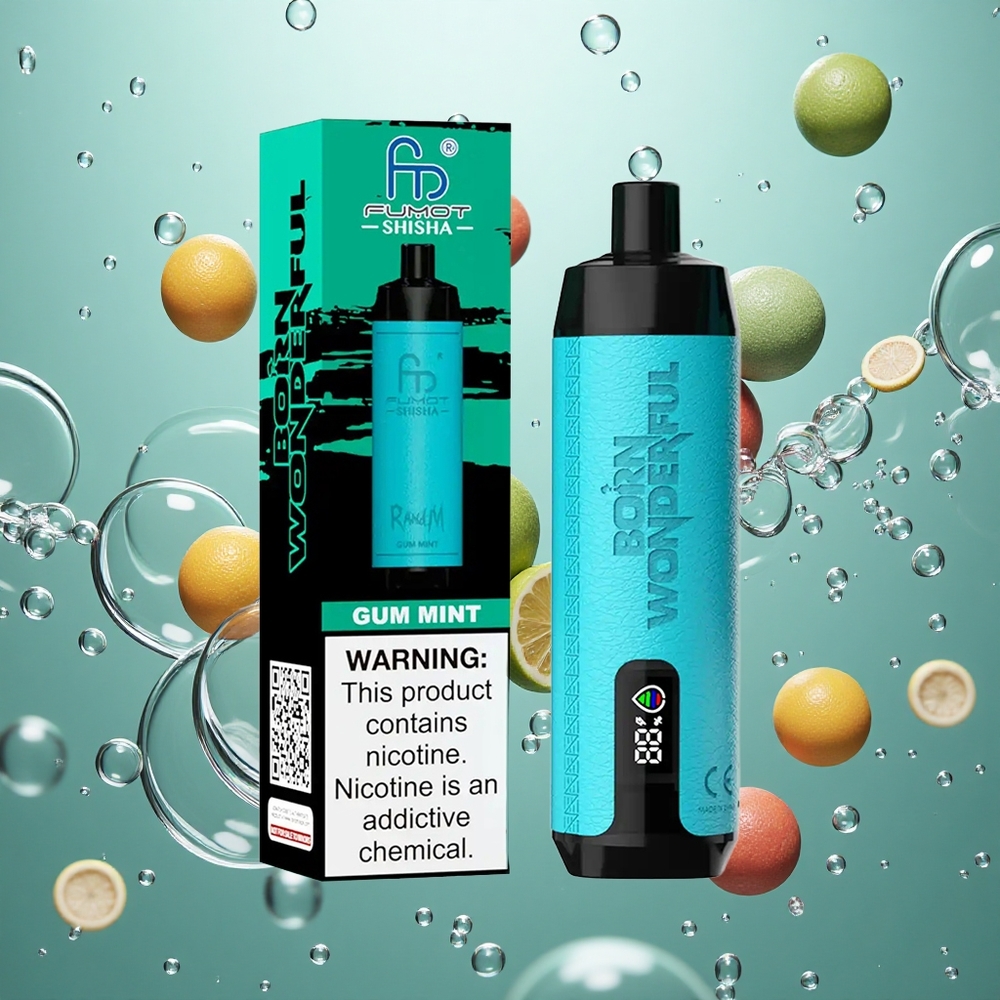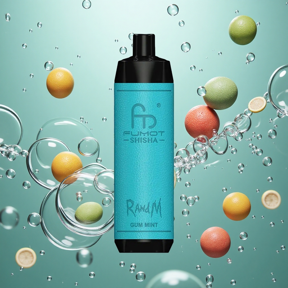 RandM Fumot Shisha 10000 Puffs Szívható Egyszerhasználatos E-Cigi Rágógumi Menta Íz 18ml Előre Töltött E-Liquiddel