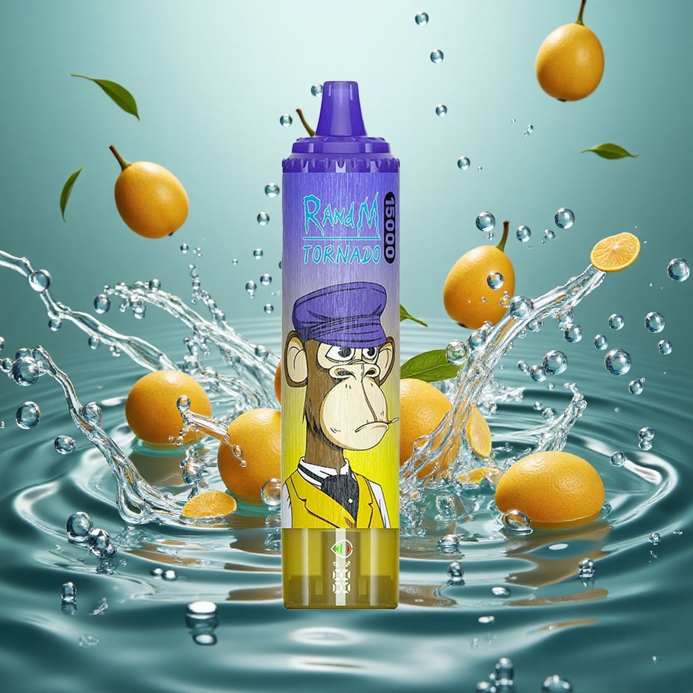RandM Fumot Tornado 15000 Puffs LCD Képernyős Eldobható E-cigaretta Mango Jégen