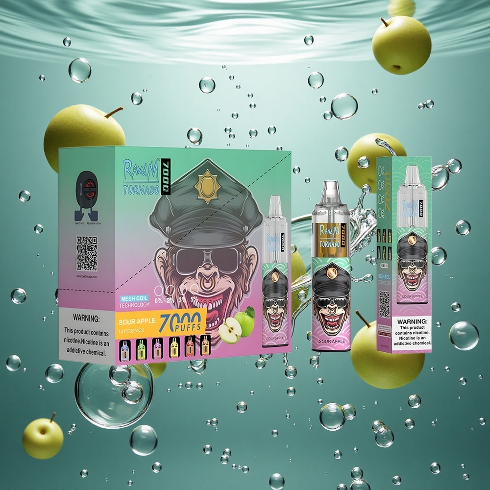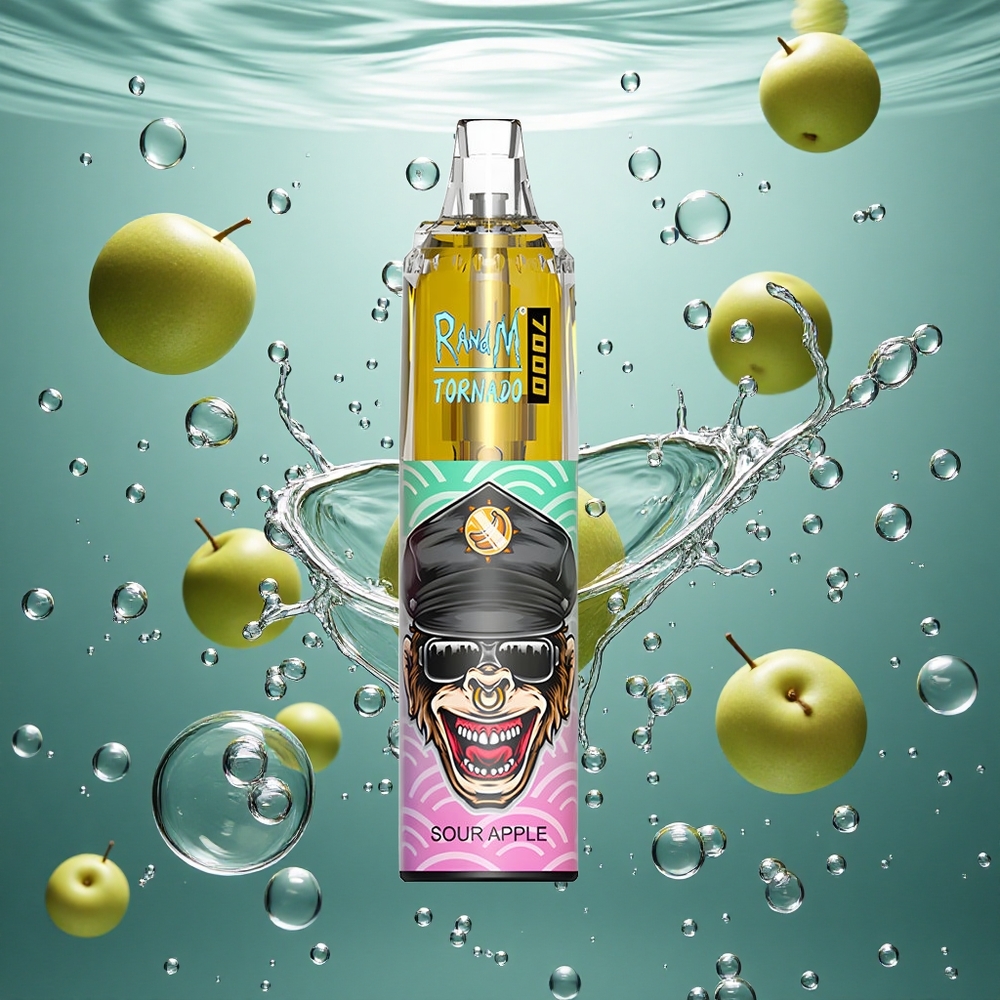 RandM Fumot Tornado 7000 Eldobható E-cigaretta Savanyú Alma Ízű, 850 MAH Akkumulátor, RGB Világítás, Levegő-Beállítható