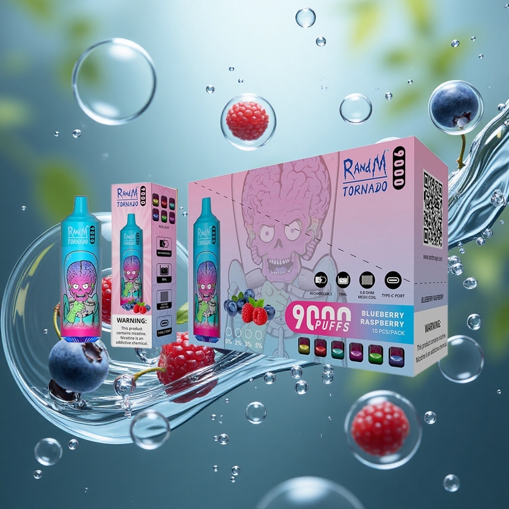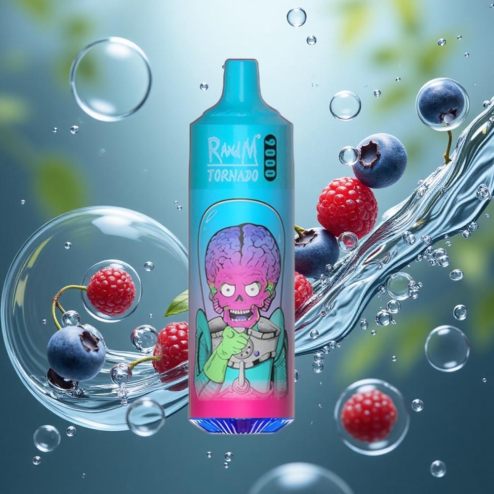 RandM Fumot Tornado 9000 Puffs Egyhasználatos E-cigaretta Áfonya-Málna Íz, 18 mL E-likvid Kapacitás