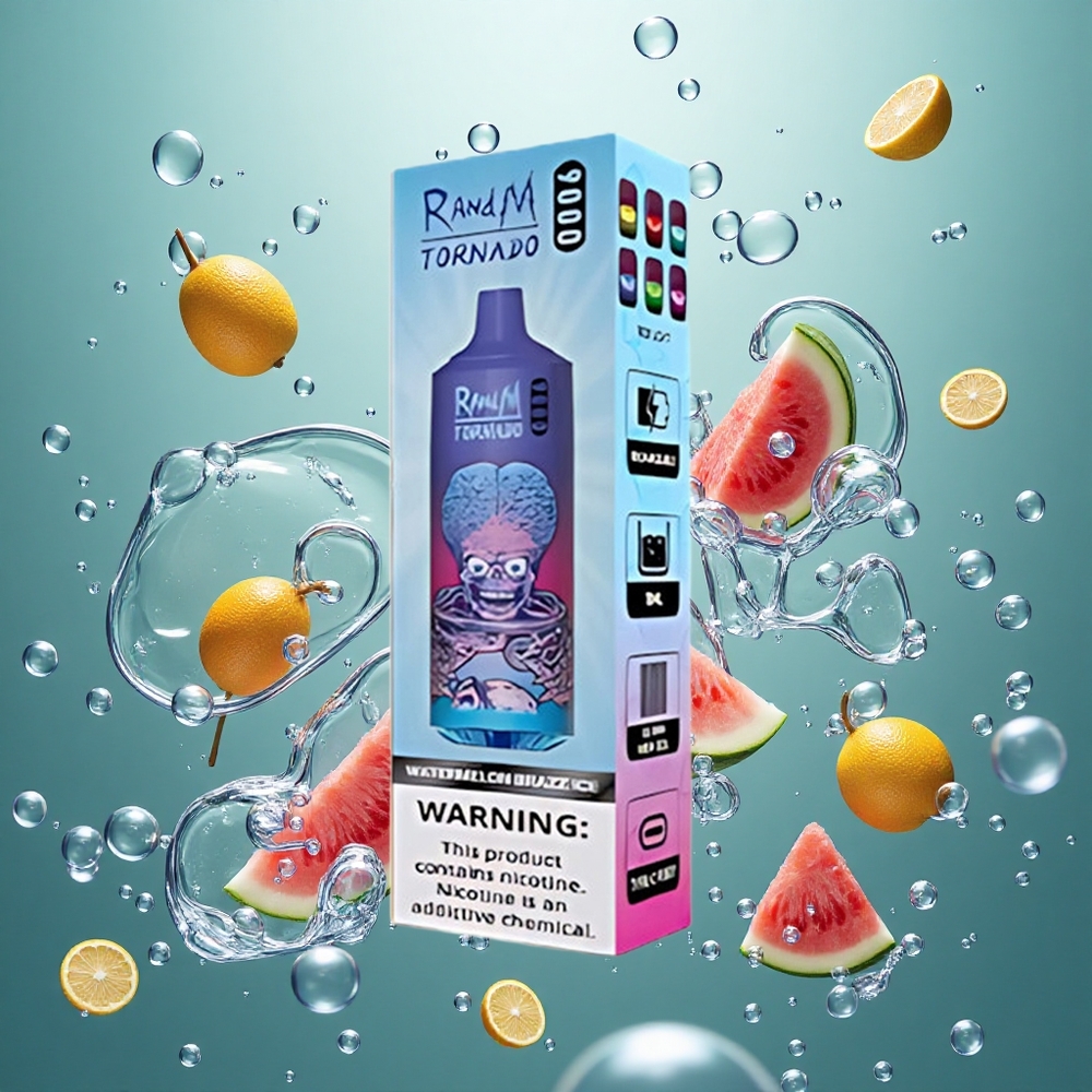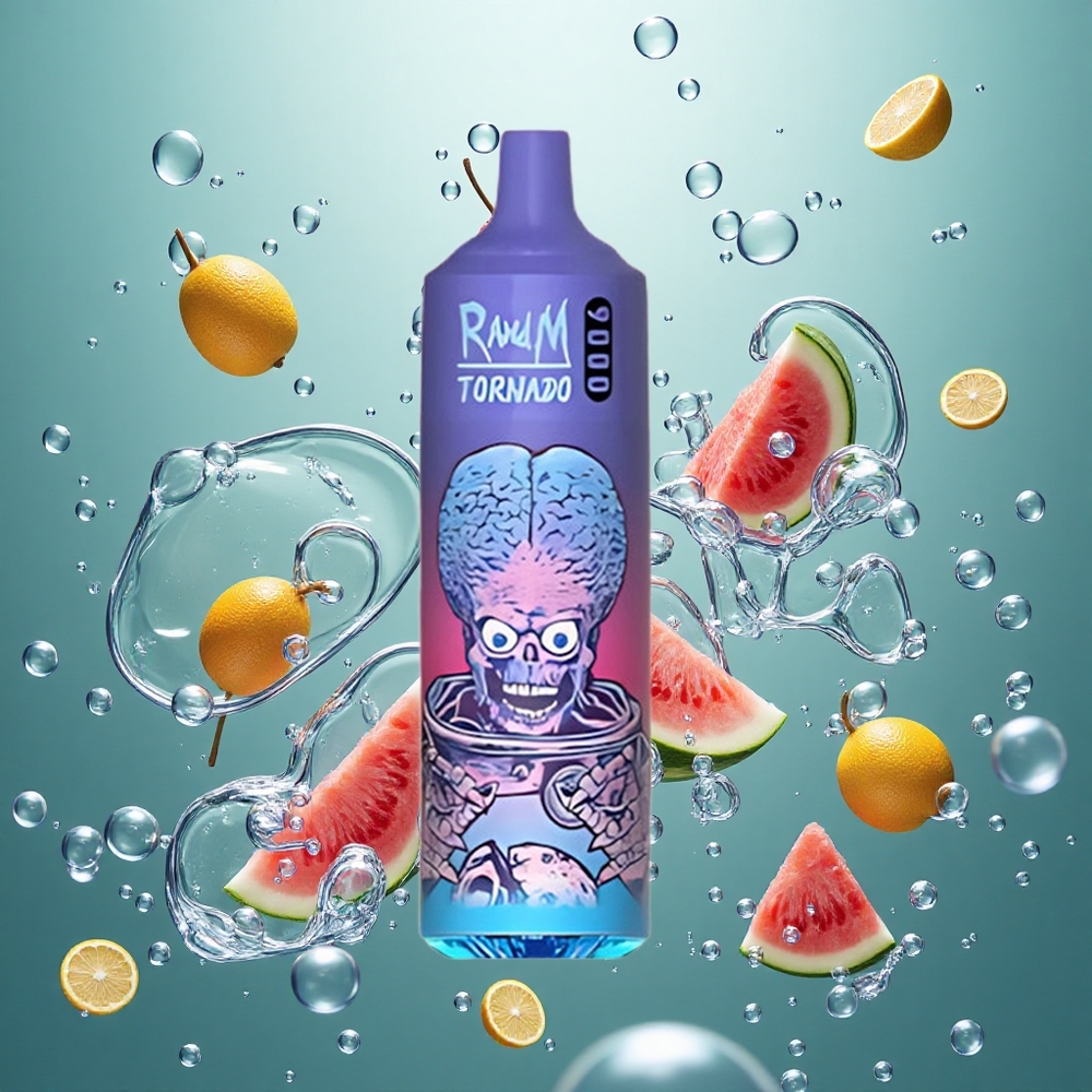 RandM Fumot Tornado 9000 Puffs Egyhasználatos E-cigaretta Görögdinnye Brazz Jég 18 mL E-liquiddel