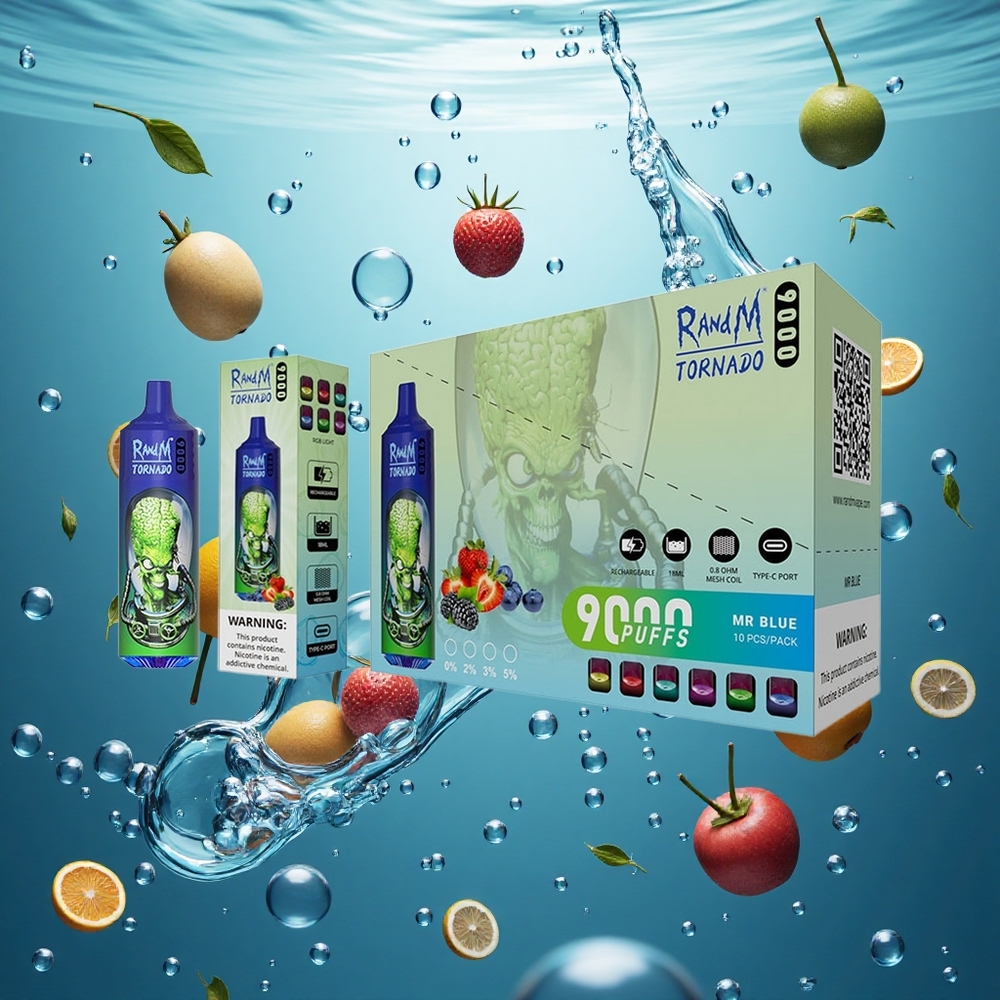 RandM Fumot Tornado 9000 Puffs Egyhasználatos E-cigaretta Mr Kék – 18 mL E-liquiddel, Mesh Coil, RGB Kijelző, 54 Ízvariáció