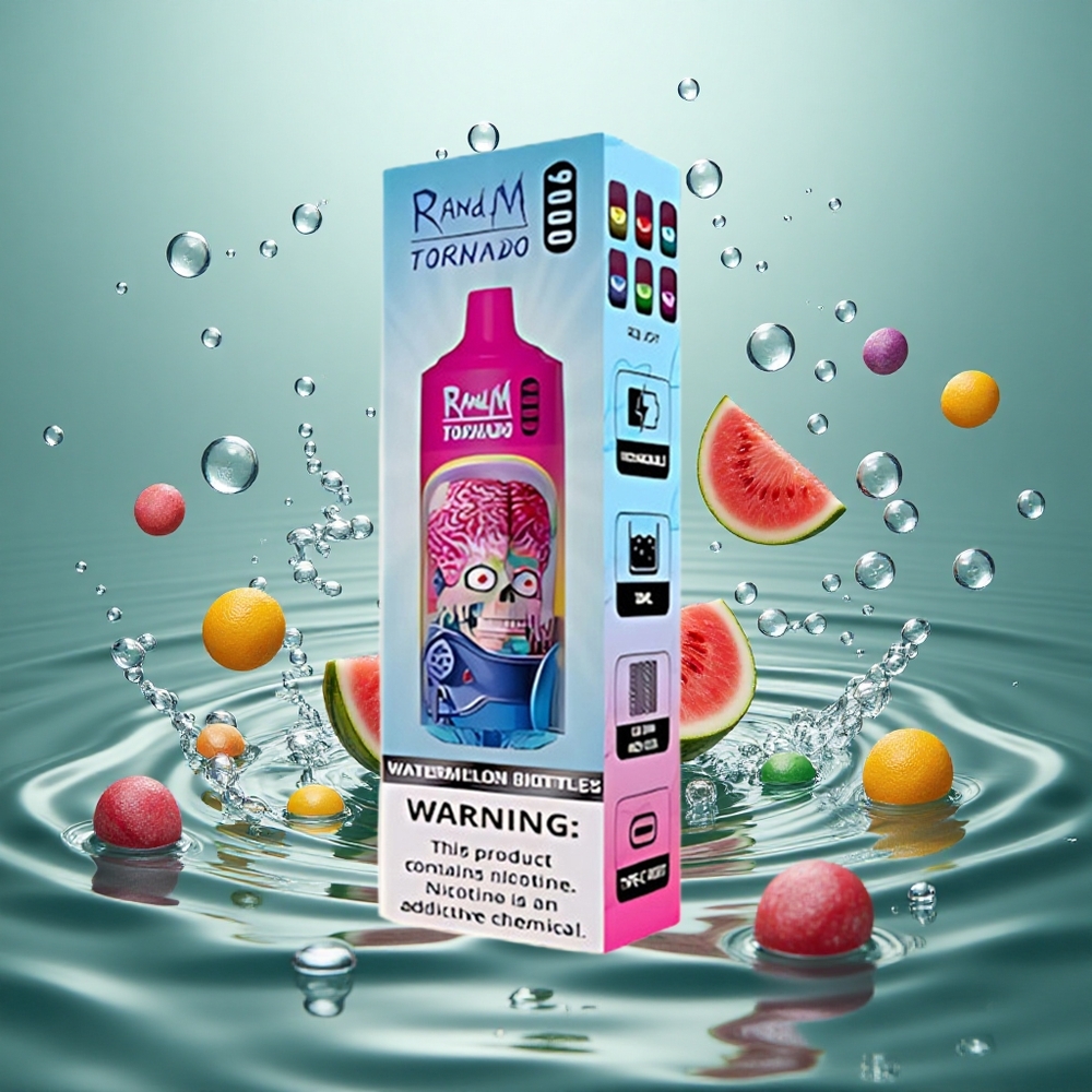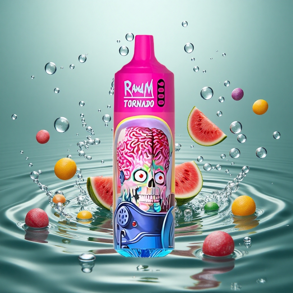 RandM Fumot Tornado 9000 Puffs Eldobható E-cigaretta Görbe RGB Kijelzővel, Görögdinnye Skittles Íz