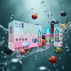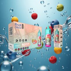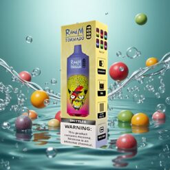 RandM Fumot Tornado 9000 Puffs Eldobható E-cigaretta Görbe RGB Kijelzővel, Görögdinnye Skittles Íz