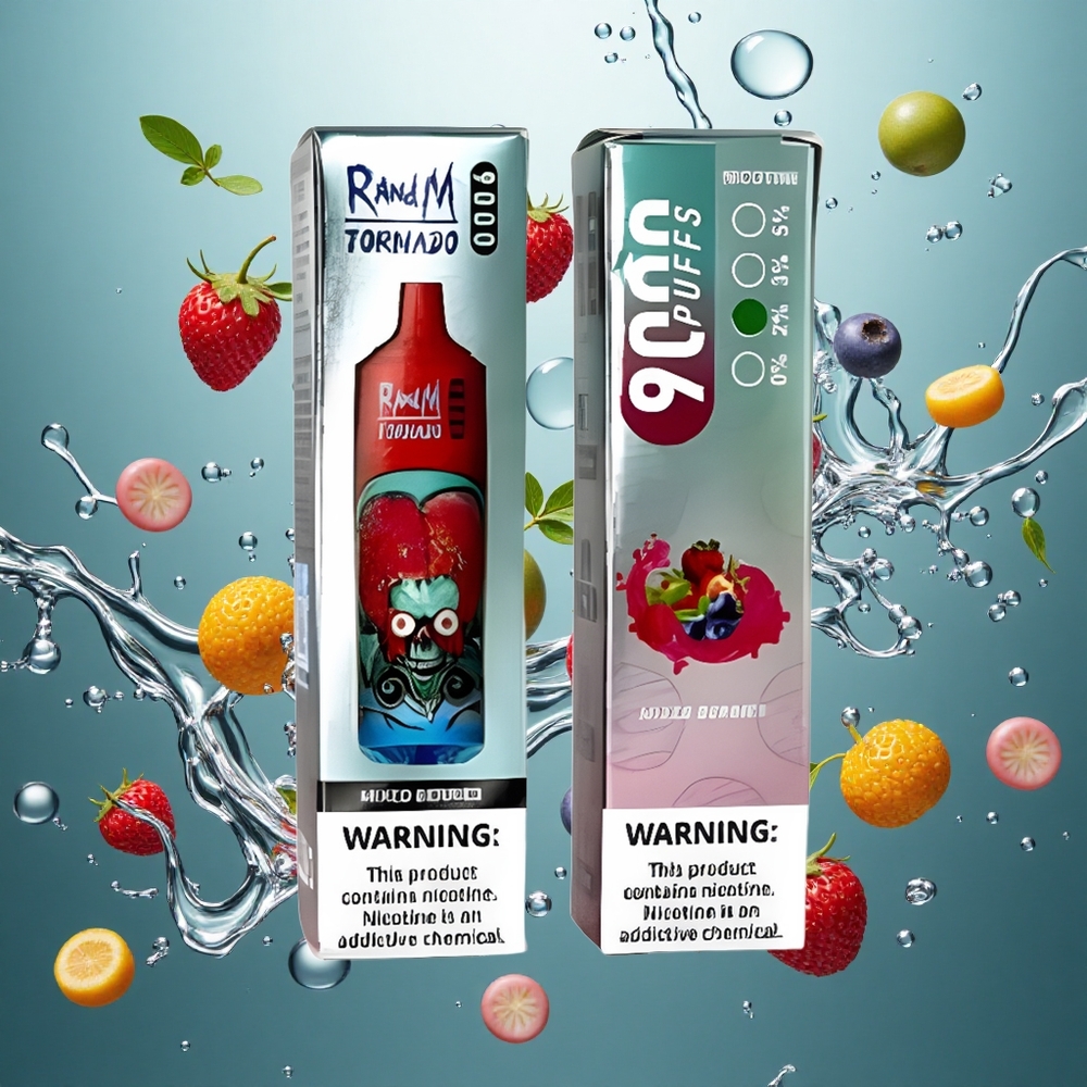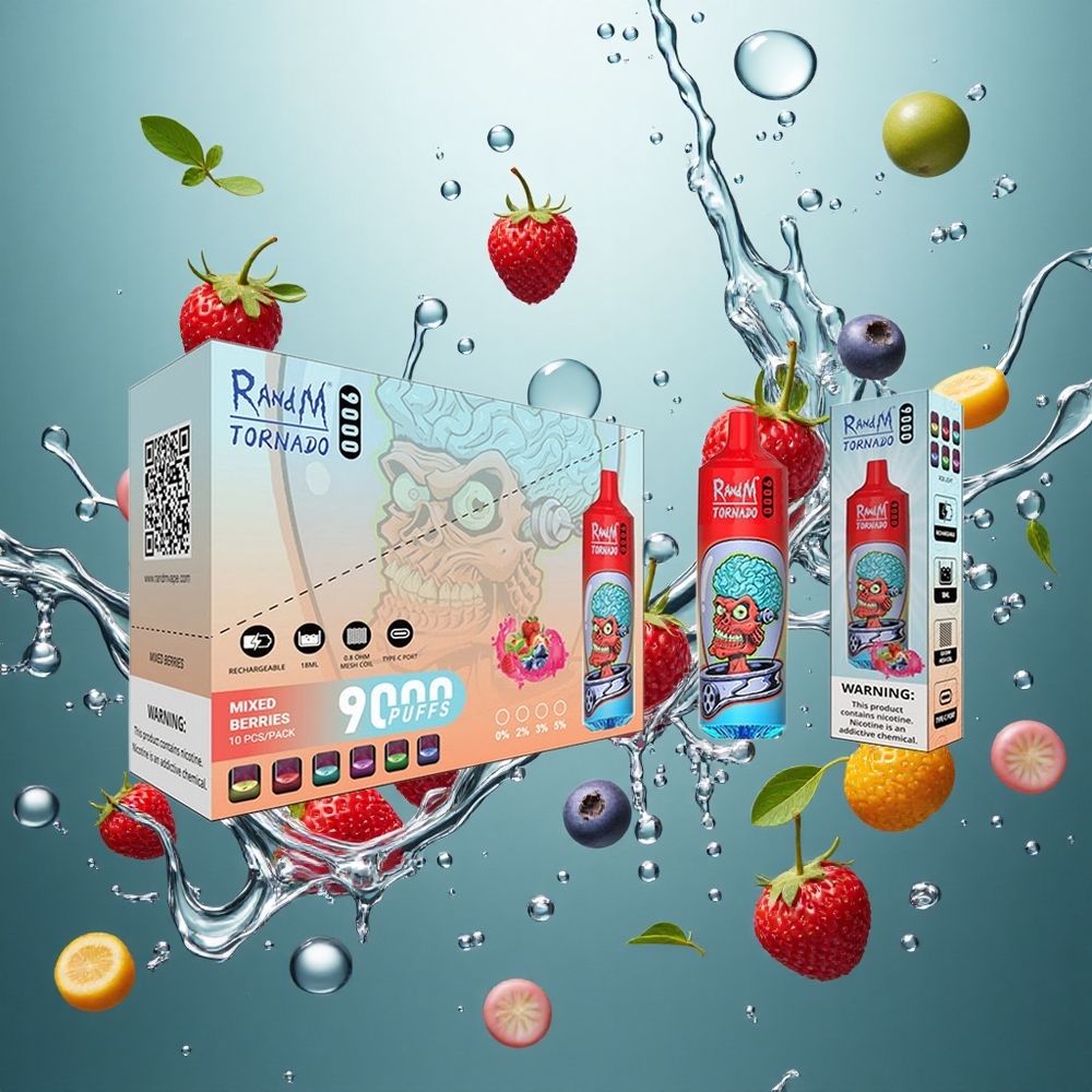 RandM Fumot Tornado 9000 Puffs Eldobható E-cigaretta Vegyes Bogyók íz, 18 mL E-liquid Kapacitás, Mesh Coil, RGB Kijelző, 54 Fajta Íz
