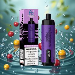 RandM Fumot Shisha 10000 Puffs Cherry Fiesta LED Jelzővel Eldobható E-Cigi – Cseresznye Ünnep