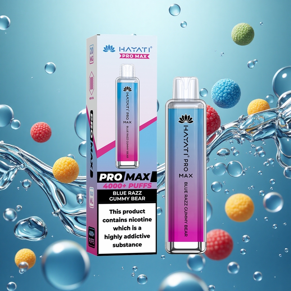 Hayati Pro Max 4000 Puffs Eldobható E-cigaretta Kék Málna Gumicukor Ízű 1400mAh Akkumulátorral