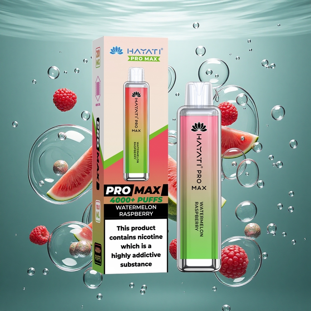 Hayati Pro Max 4000 Puffs Eldobható E-Cigi Vizimálna-Málna Ízű Kristály Megjelenésű, 1400mAh Telephelyű
