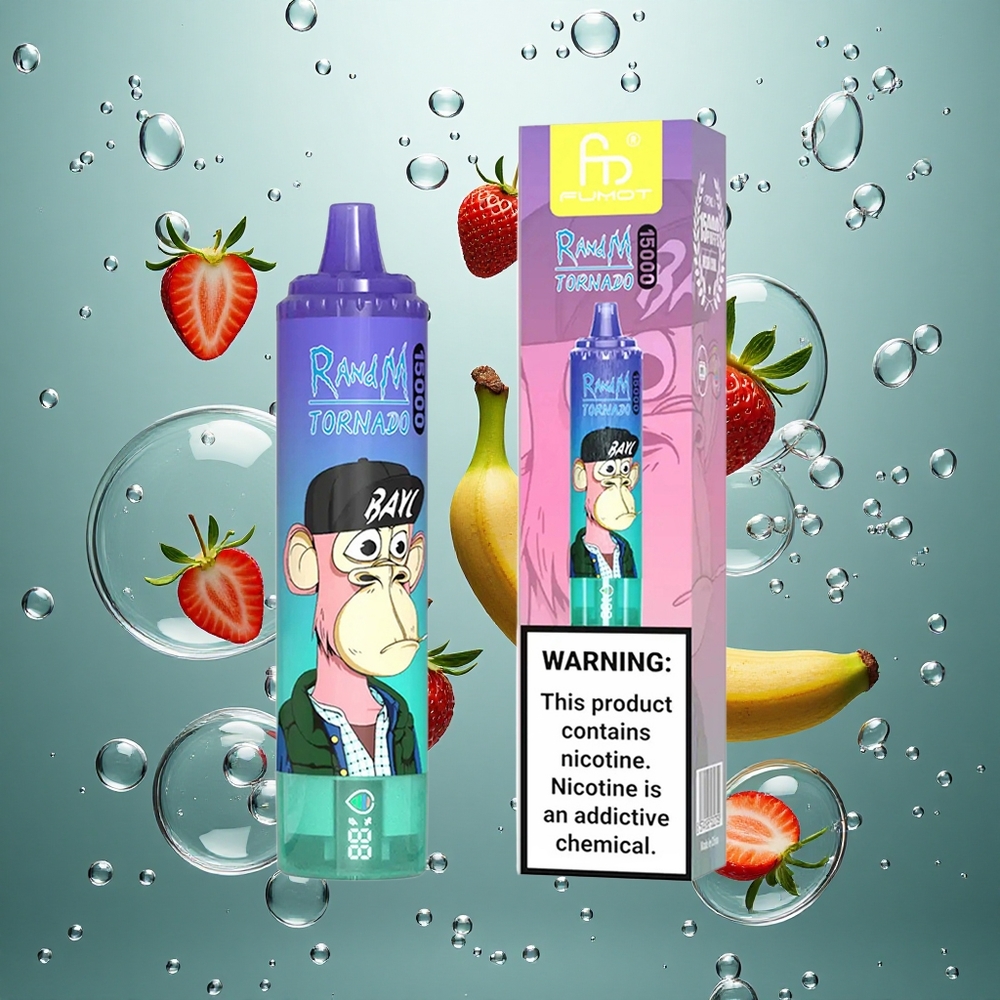 RandM Fumot Tornado 15000 Puffs Eldobható E-cigaretta Eper-Banán 25ml Folyadékkapacitással