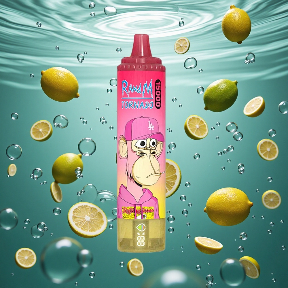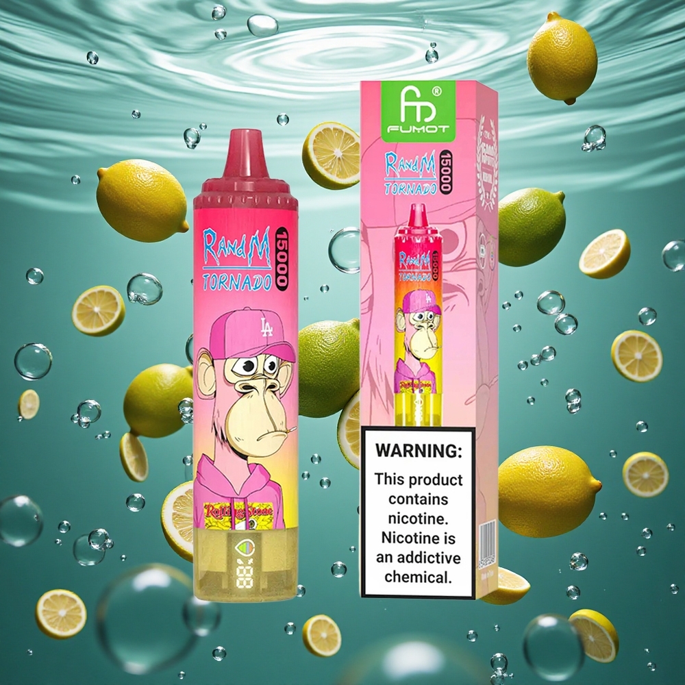 RandM Fumot Tornado 15000 Puffs Eldobható E-Cigi Citrom 25ml Mesh Coil USB Type-C LCD Kijelzős