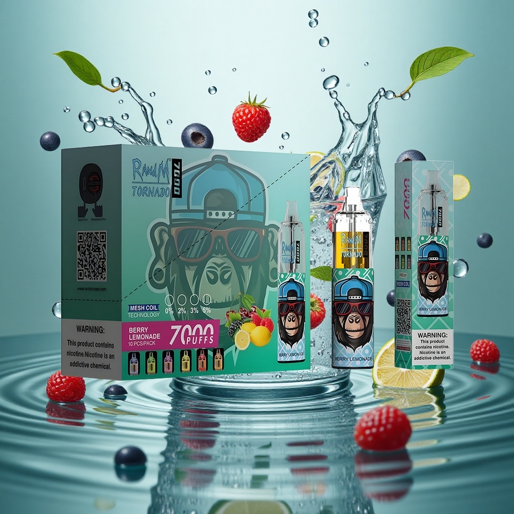 RandM Fumot Tornado 7000 Puffs Eldobható E-cigaretta Bogyós Limonádé 14 ML E-liquid-lel