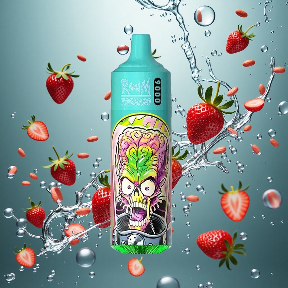 RandM Fumot Tornado 9000 Puffs Eldobható E-cigaretta Eper-Granáta, 18 mL E-liquiddel és RGB Kijelzővel