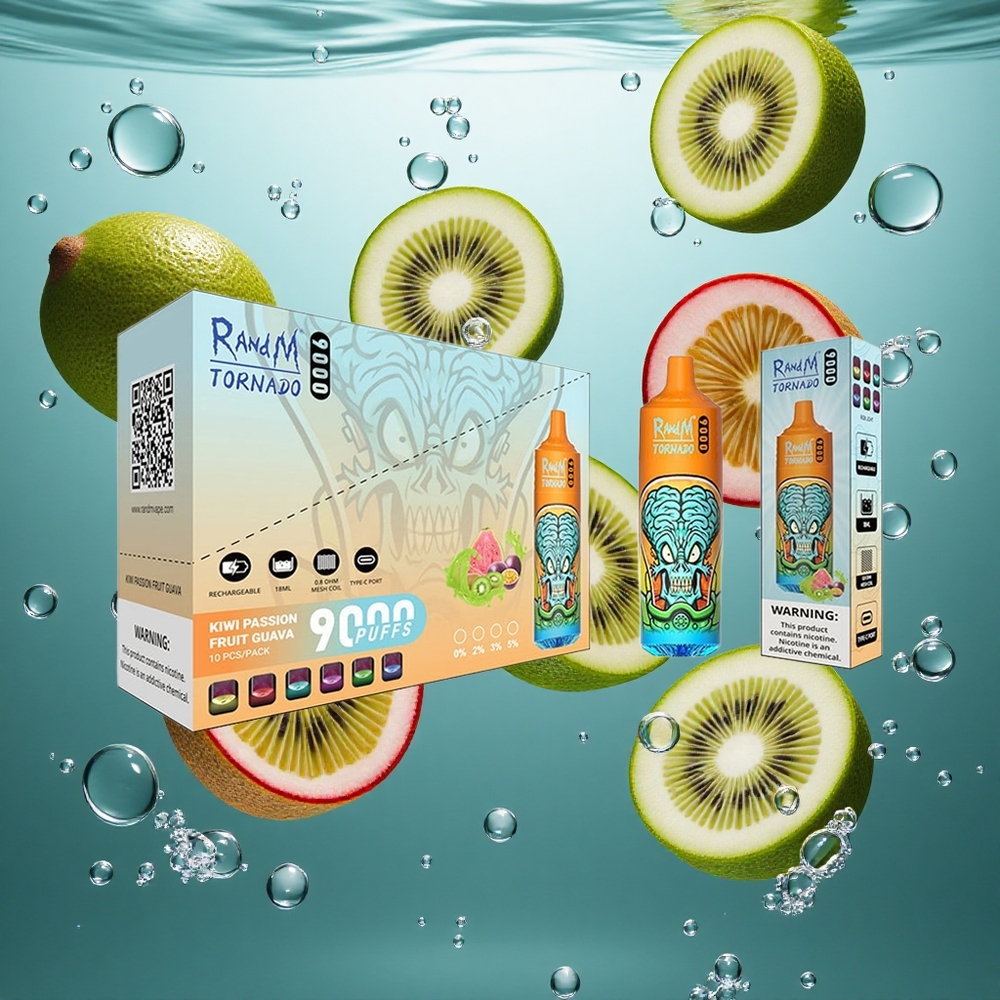 RandM Fumot Tornado 9000 Puffs Eldobható E-cigaretta Kivi Passiógyümölcs Guava 18 mL E-liquid Kapacitással