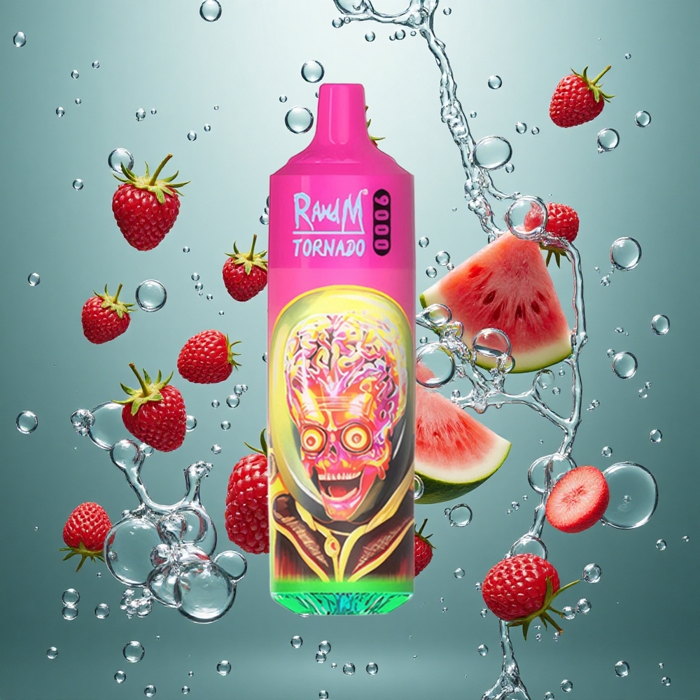 RandM Fumot Tornado 9000 Puffs Eldobható E-cigaretta Málna Görögdinnye Íz 18 mL E-liquiddel